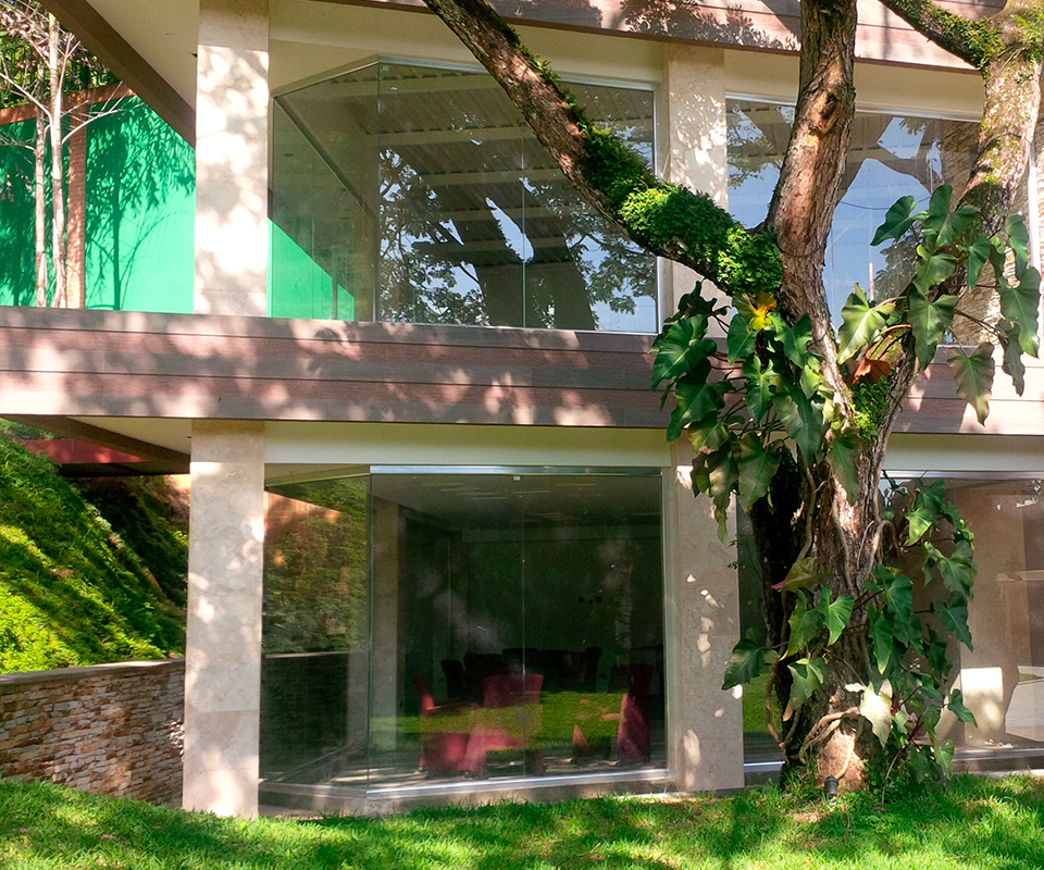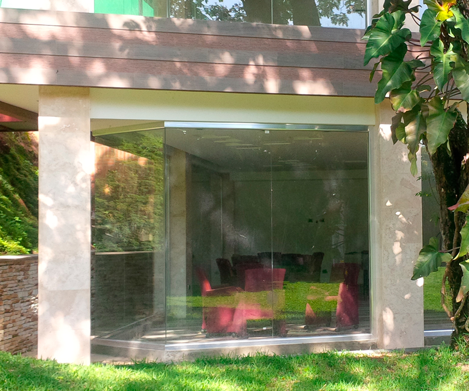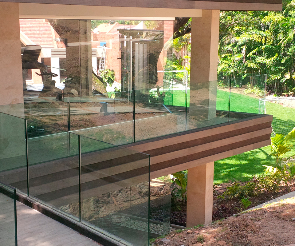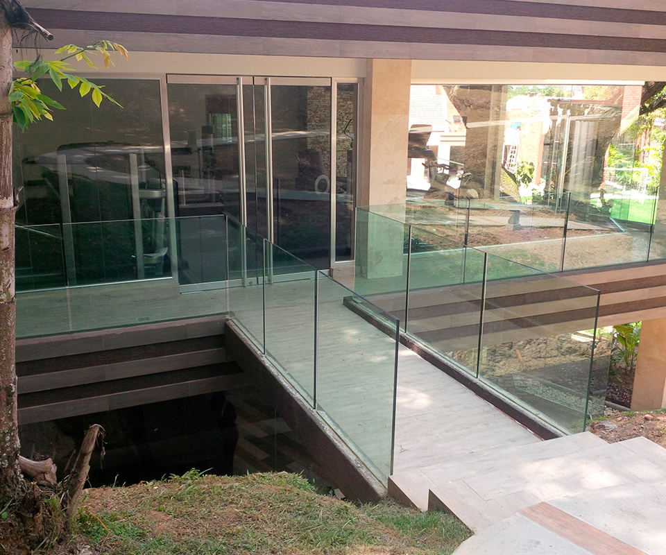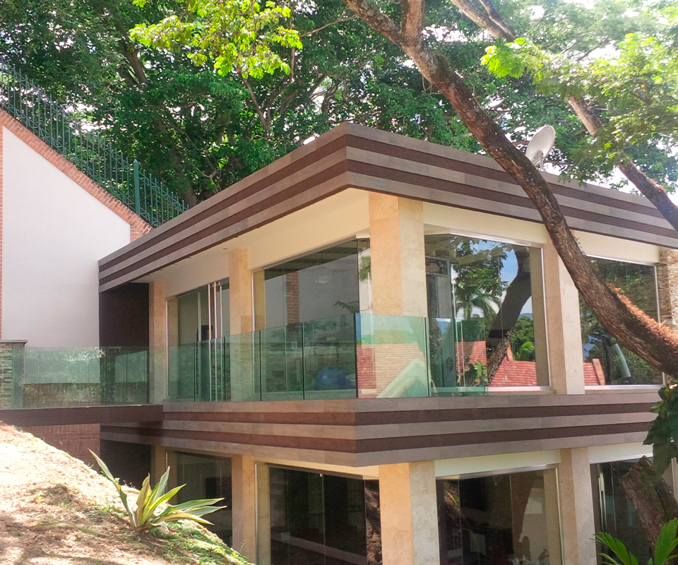 Diseño de múltiples soluciones en cristal para esta quinta en Venezuela. Se ofreció una solución exclusiva en barandas, utilizando únicamente cristal templado, lo que brinda seguridad y protección en todo momento. Además, implementamos cerramientos panorámicos en la planta baja y superior del proyecto, creando un espacio luminoso y espacioso.