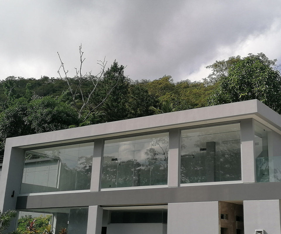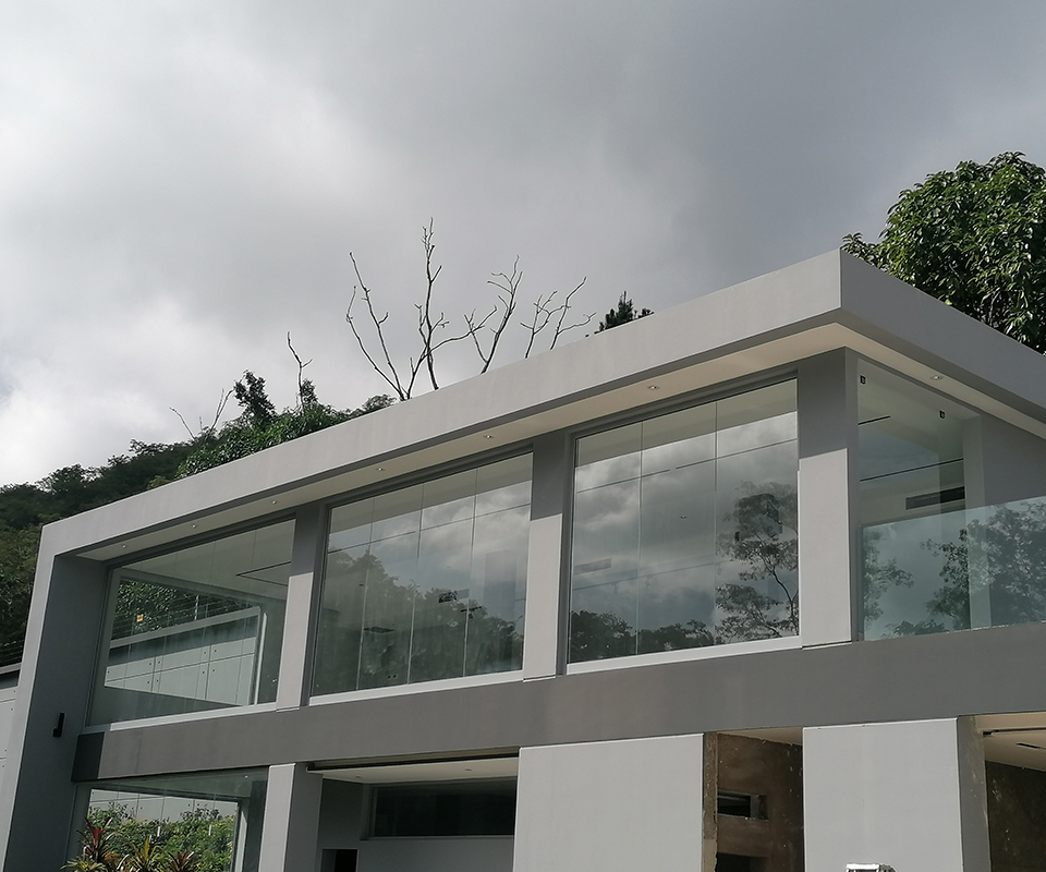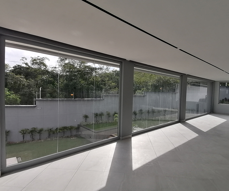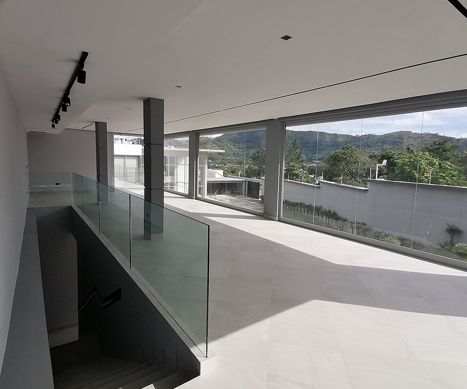 Para una quinta moderna en Caracas, diseñamos un cerramiento panorámico que ofrece una vista ininterrumpida de los alrededores, permitiendo disfrutar del paisaje urbano sin las barreras visuales que imponen las construcciones tradicionales.