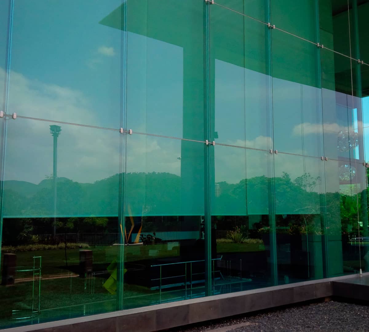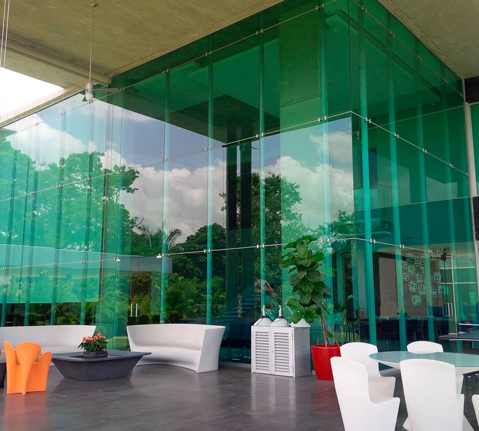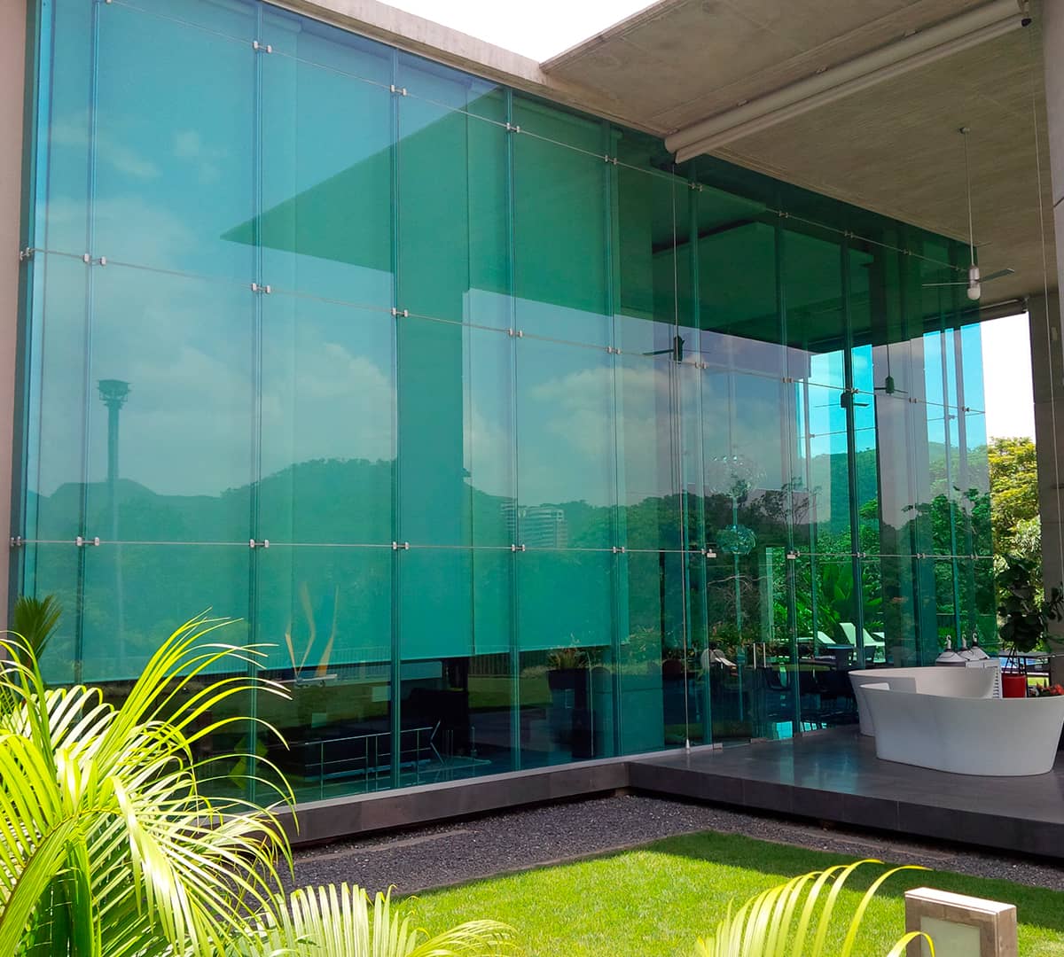 Solución innovadora para fachada tipo araña con cristal laminado.
