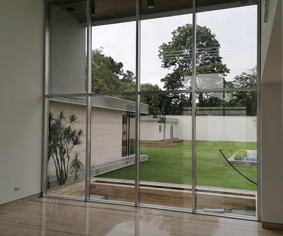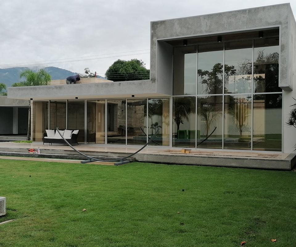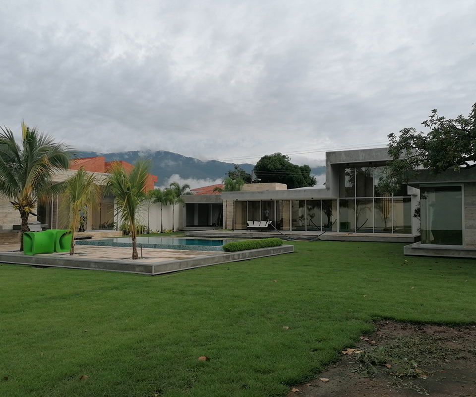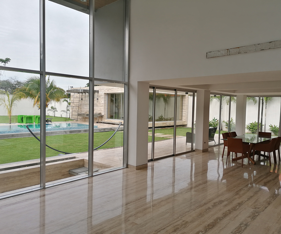 El proyecto arquitectónico para esta quinta ha resultado en una impresionante fachada con cristal de protección UV, permitiendo a los residentes disfrutar de vistas ininterrumpidas del jardín. Esta integración de elementos naturales y diseño moderno no solo mejora la estética de la casa, sino que también promueve una conexión fluida entre los espacios interiores y exteriores.