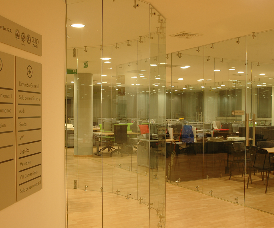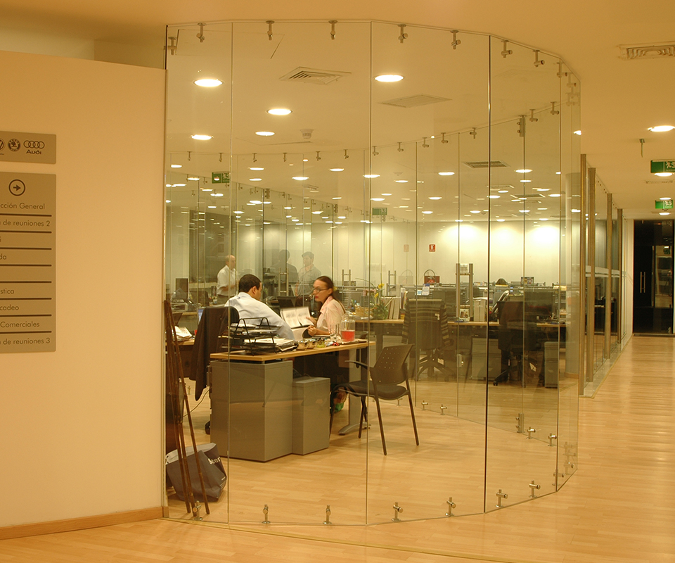 Este proyecto de cerramiento de oficinas fue diseñado con esmero para lograr una separación elegante y funcional. Se utilizaron sujeciones en acero para fijar el cristal templado. Esta elección garantiza la durabilidad y la seguridad necesarias para un entorno de trabajo.